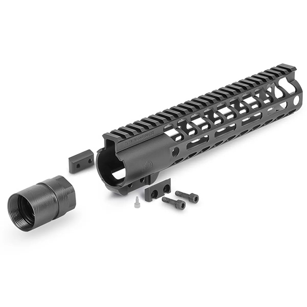 The KMX Series M-LOK® Free Float Rail features a slim profile for improved ergonomics and allows the shooter a modular platform using the M-LOK® rail attachment system. The KMX Series uses the FREELOK Clamping System (US. PAT. NO. 9,389,043 B1). Includes a non-indexing barrel nut and clamping system (FREELOK) that utilizes free floating tabs to secure the rail to the receiver. FREELOK provides both frictional and mechanical locking forces to create a rock-solid bond between the rail and barrel nut. Trinity Force recommends this part be installed by a competent, qualified gunsmith/installer with an understanding of the weapon platform that the part is being installed on. Always make sure the firearm is unloaded and pointed in a safe direction when working.